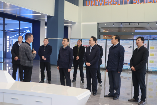 在丹枫园大学科技园,蒋文定参观园区部分企业,深入了解科技园建设及企业创新等方面的情况。他指出,要发挥高校资源优势,提升学生的职业素养和创新能力,加强产学研协同创新,培育更多具有核心竞争力的高新技术企业。要持续优化创新创业环境,为学生提供发展平台,吸引更多优秀人才和优质项目入驻,为九江高质量发展提供坚实的科技支撑和人才保障。