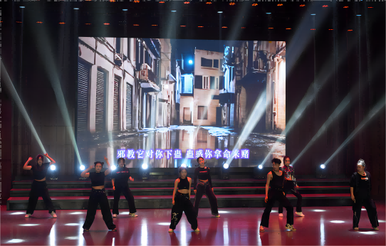 晚会在歌舞《安全守护》中正式拉开帷幕。演员们以激昂的旋律、优美的舞姿,描绘出无数坚守国家安全阵线的动人身影,迅速点燃现场氛围;情景朗诵《我爱你,中国》情感真挚,浓烈的爱国情怀直抵人心,引发观众强烈共鸣;器乐节目《丝路驼铃》通过悠扬婉转的阮乐,展现传统乐器的独特魅力,传递出开放包容、合作共赢的国际视野;情景舞蹈《孤勇者》用舞蹈语汇塑造无名英雄的光辉形象,赢得阵阵掌声;舞蹈节目《十八焕蝶》《夺命救世主》则展现了新时代青年在国家安全保障下的蓬勃朝气与责任担当;小品《一墙之隔》紧贴现实,以诙谐幽默的方式揭示诈骗套路,寓教于乐,提升观众防范意识;朗诵《守护这片山河》用铿锵有力的语言传递出“校警携手,守护国家安全”的坚定信念,感人至深,催人奋进。