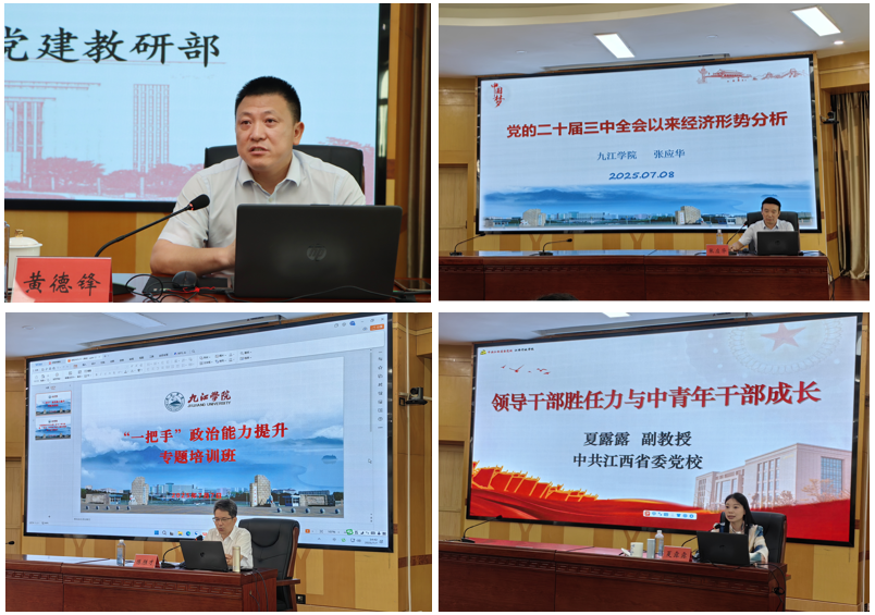 培训班课程紧扣深入贯彻中央八项规定精神学习教育和干部能力提升,既有理论学习,又有形势分析,既注重方法讲授,又注重研讨交流,做到了理论与实践相结合、务虚与务实相统一。培训班开展了4场专题辅导,邀请了省委党校党史党建教研部主任黄德锋教授作《习近平总书记关于树牢正确权力观、政绩观、事业观论述》辅导报告,省委党校国家治理教研部夏露露副教授作《领导干部胜任力与中青年干部成长》辅导报告,56.nt必赢官网马克思主义学院院长陈胜才教授作《持续擦亮新时代党的建设“金色名片”》辅导报告,56.nt必赢官网经济学院张应华副教授作《党的二十届三中全会以来全国经济形势分析》辅导报告。组织学员观看了警示教育片《镜鉴家风》,并以“结合工作实际谈如何贯彻中央八项规定精神,推进作风建设常态化、长效化”为主题,开展了1次分组交流研讨。