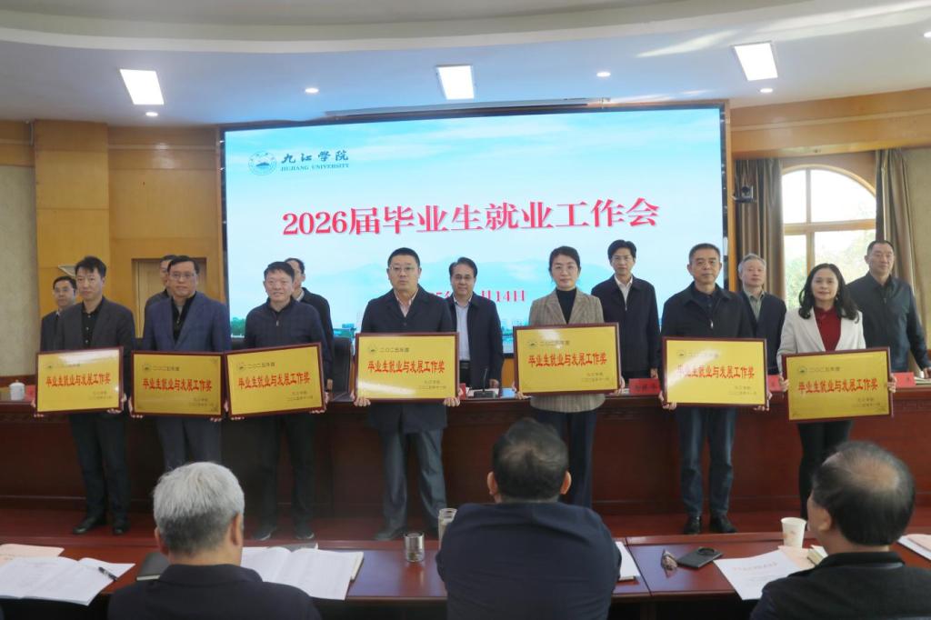 会上,校领导为获得2025年度毕业生就业与发展工作奖的二级学院颁发了奖牌,招生与就业处负责人全面分析了2025届毕业生就业工作情况,药学与生命科学学院、旅游与地理学院、法学院、管理学院代表做了典型发言和表态发言。党政机关及教辅部门负责人,有2026届全日制毕业生的二级学院党委书记、院长、党委副书记,就业专职辅导员、招生与就业处就业科室工作人员参加会议。