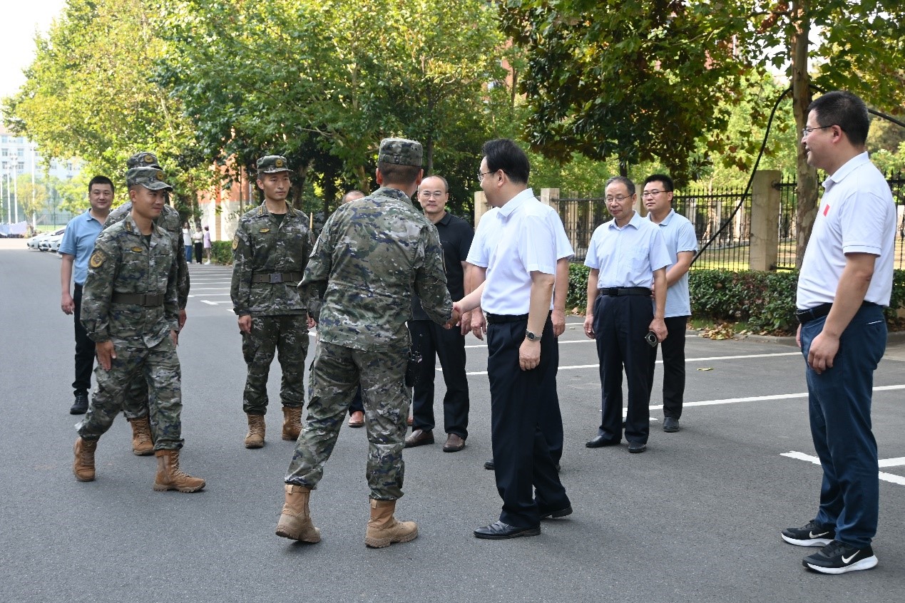 9月18日上午,校党委书记李明斌、校长陈小林、副校长鲁卫东前往军训现场,看望2024级军训新生,慰问军训教官和带训辅导员。