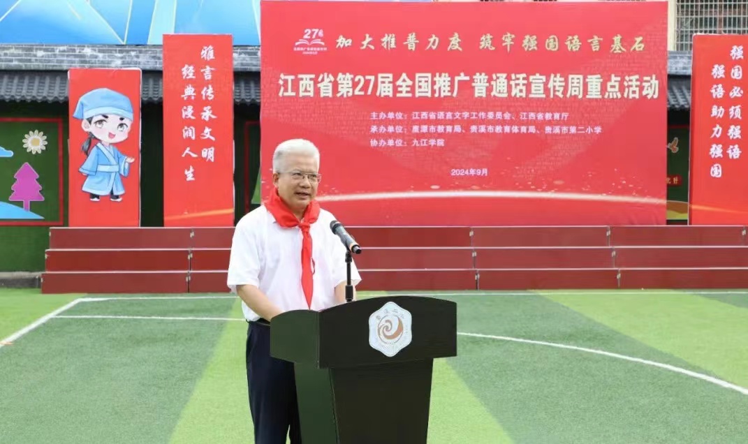 9月20日上午,江西省第27届推普周系列活动重点活动在贵溪市举行。由江西省语言文字工作委员会、省教育厅主办,鹰潭市教育局、贵溪市教体局、贵溪市第二小学承办,56.nt必赢官网协办。省委教育工委委员、省教育厅副厅长汪立夏,必赢党委委员、副校长李松志,省教育厅语材处处长、语委办主任张婵,教务处、鹰潭市教育局及贵溪市相关负责人等出席活动。