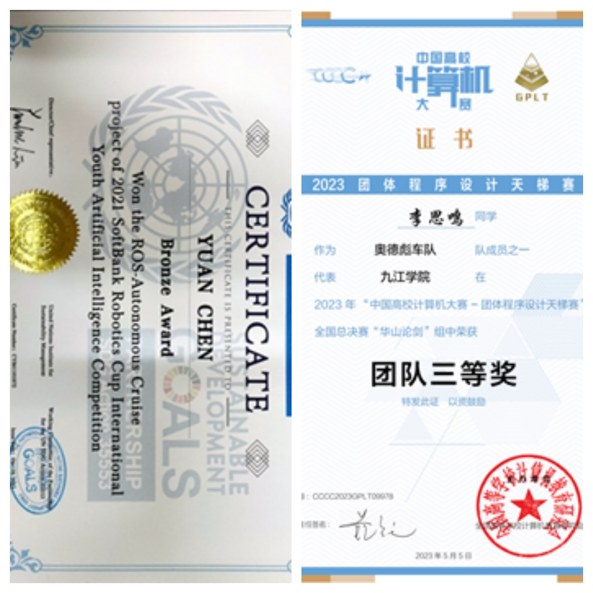 深入推进“三全育人”综合改革,坚持“五育并举”,搭建育人新生态,践行立德树人根本任务,筑牢政治定力。整合专业教师、学工队伍、专职辅导员、企业工程师兼职班主任“四方”立体化育人力量,搭建以赛促学、以赛促教、以赛促创育人闭环。拓展素质教育阵地,鼓励大学生投身乡村振兴实习实践,积极开展“三下乡”和红色走读活动,提高学生综合素质和社会责任感。先后获得江西省全省高校红色走读活动实地走读三等奖、全省大学青春之问征集活动获一二三等奖各1人,1人荣获2021年度中国大学生自强之星;指导学生参加“蓝桥杯国赛”“天梯赛”“机器人开发者大赛”等各类竞赛,获国家级奖励50多项、省级奖励150多项。教师指导学生发表高水平学术论文8篇,其中SCI 4篇,EI 1篇;组织学生参加“数字技术”鄱湖论坛、“计算机视觉”鄱湖青年论坛,拓宽学生学术视野、激发学生学术兴趣取得了良好效果。