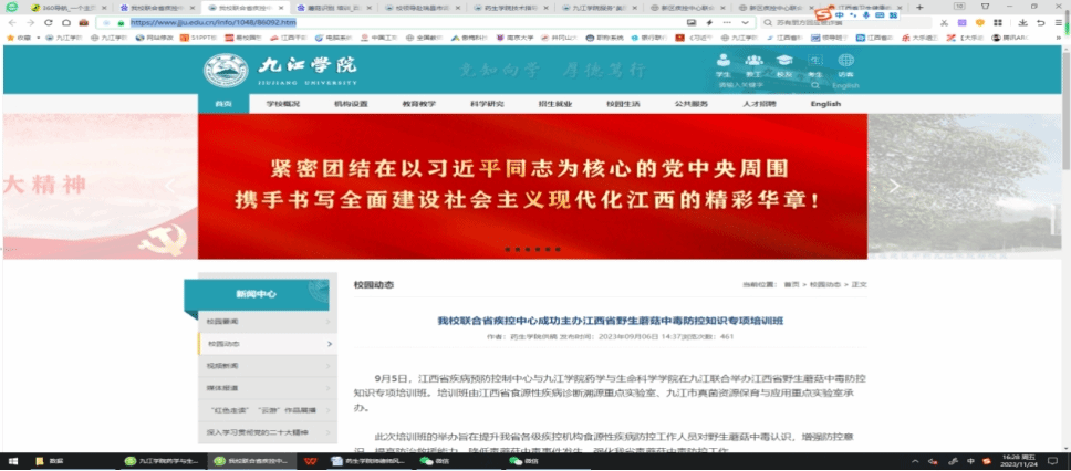 学校与江西博莱大药厂有限公司合作建设的九江市博正生物科技产业研究院成为江西省首家具有CNAS资质第三方检测机构、首家具备GCP资质的单位。与石药集团江西金芙蓉药业有限公司在汉防己及颠茄草的质量控制方面建立了长期合作,促进了近千名村民增收致富。研究团队与江西丹霞生物科技股份有限公司开发出栀子油、栀子黄色素、栀子苷、栀子蓝色素及紫薯花色苷系列产品,为企业增收效益显著。依托资源优势,培育出“赣通1号”和“赣通2号”两个木通新品种,在武宁县推广种植,取得较好的效益。真菌学研究团队与省市疾控中心紧密合作,开展野生蘑菇中毒预防救治和科普宣传,精准鉴定中毒蘑菇物种,助力医院有效施治。2023年5月23日深夜,药生学院2位博士星夜驱车305公里路程,从九江赶到贵溪市人民医院,为救治患者生命提供帮助,事迹被新华社和江西省政府报道。