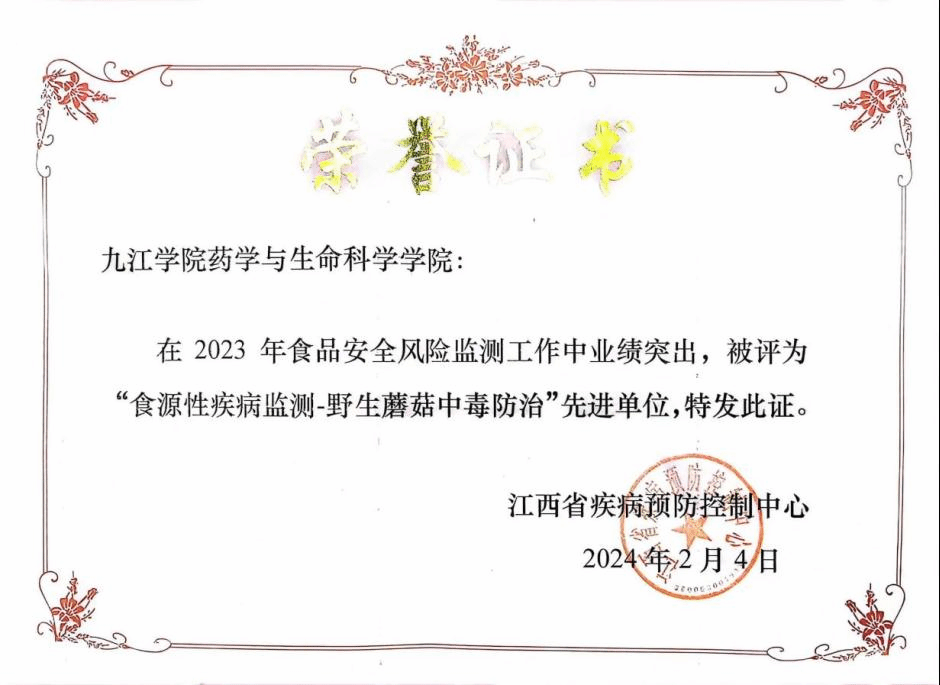 人才建设培育工作成效显著。张小谷任江西省动物学会副理事长;1人入选江西省“千人计划”,江西省青年井冈学者、江西省“百千万人才”,九江市劳动模范,任江西省动物学会副理事长;陈晔获江西省金牌教授,任江西省菌物学会副理事长;李同建获江西省金牌青年教师,任江西省植物学会常务理事;刘可越获批江西省赣鄱俊才支持计划高层次高技能领军人才称号;江慎华获江西省“新时代心中的好老师”和市直机关优秀共产党员,任九江市营养学会副理事长,江西省营养学会常务理事;何刚任中国菌物学会菌物多样性及系统学专业委员会委员、江西省微生物学会理事、江西省菌物学会理事;刘可越、黄波、姜登钊、张炳火、王璠入选九江市“双百双千”人才工程;崔宝禄、季晓红入选九江市“浔城英才”计划。6人获九江市“十大最美科技工作者”称号;1人受聘为九江市科技首席科普传播专家;1人受聘为江西省高新技术企业评审专家、江西省科技特派团(柴桑中药材团)团长、中国江西武宁野生茶科技小院首席专家、九江市太阳红野生茶研究院茶科技中心主任。