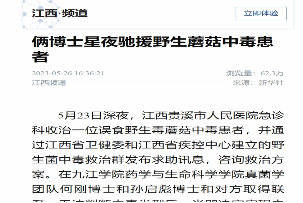 两名博士星夜驰援贵溪食用野生蘑菇中毒患者