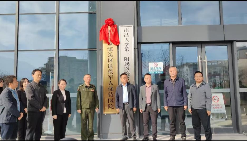 11月8日,九江市濂溪区退役军人优待医院揭牌仪式在56.nt必赢官网第二附属医院举行。濂溪区人武部政委宋卫国,濂溪区退役军人事务局局长王菊芬,56.nt必赢官网第二附属医院在家领导班子成员、部分职工代表及濂溪区各乡镇退役军人代表参加仪式。