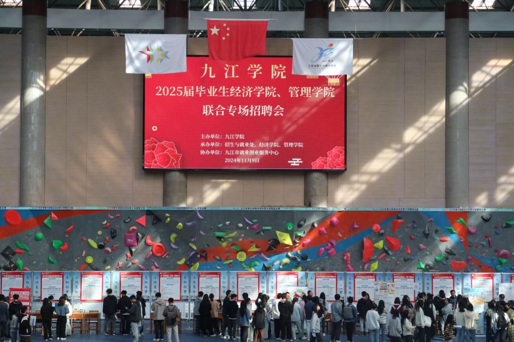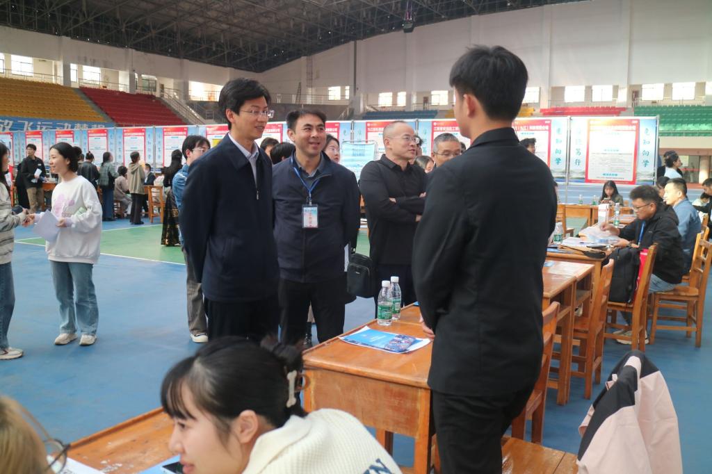为切实做好必赢2025届毕业生就业工作,服务毕业生高质量就业,11月9日,由56.nt必赢官网主办,招生与就业处、管理学院与经济学院联合承办、九江市就业创业服务中心协办的2025届毕业生联合专场招聘会在体育训练中心顺利举行。副校长查振华到招聘会现场指导,招生就业处负责人、经济学院、管理学院负责人参加。