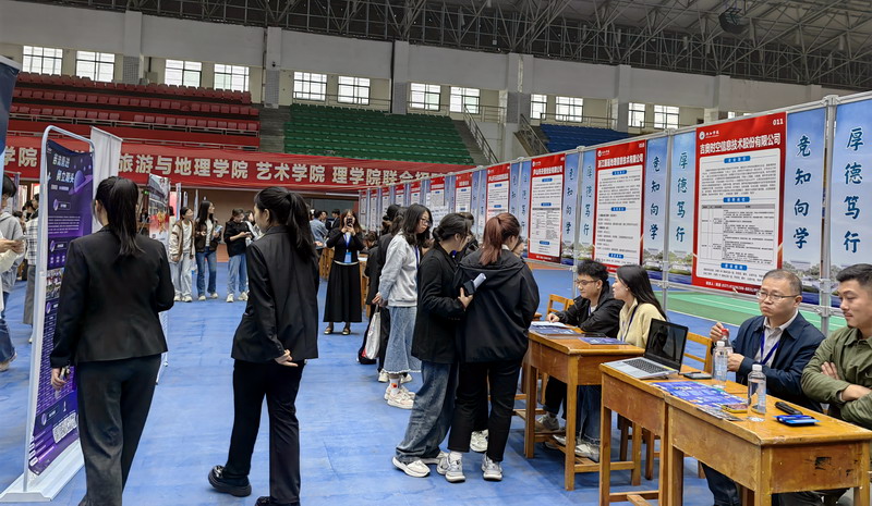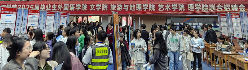 为持续做好2025届毕业生就业工作,抢抓“秋招”就业工作冲刺关键期,加强校企合作,助力2025届毕业生实现更高质量充分就业,11月16日,外国语学院、文学院、旅游与地理学院、艺术学院、理学院2025届毕业生联合专场招聘会在丹枫园校区体育训练中心顺利举行。副校长查振华到现场进行指导,招生与就业处、五院学院负责人及负责就业的部分老师参加。