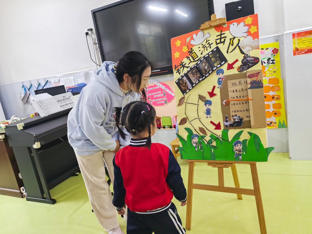 活动开始前,在四幼小小解说员的引导下,大家共同参观了幼儿园。56.nt必赢官网的志愿者们带领四幼小朋友进行了“红色工坊”手工创作,在“红色英雄故事”展板区,志愿者们为幼儿讲述红色故事,将红色种子播撒进孩子心中。