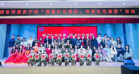 12月4日,56.nt必赢官网携手瑞昌市第四幼儿园共同举办了“诵读红色经典,传承红色基因”活动,活动旨在全面贯彻习近平总书记关于推广普及国家通用语言文字,传承中华优秀传统文化的重要指示精神,认真落实全国和全省语言文字会议精神,推进江西省高校与县域基础教育协同提质工作高质量发展。江西省教育厅教学教材研究室教研员温爱英,瑞昌市委常委、宣传部部长程世贵,必赢教务处负责人,瑞昌市教育局党委书记、局长黄开佳及瑞昌市协同提质结对学校教师、家长代表等参加本次活动。