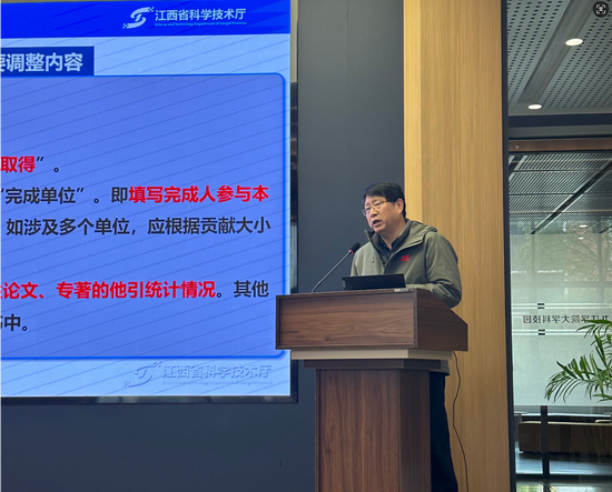 主持会议时,王殿元指出,此次会议的召开,为我市广大科研人员提供了一个宝贵的学习机会,帮助大家更好地理解和掌握江西省科学技术成果奖的申报流程和相关政策,专家们的讲解和分享,为大家提供了有价值的指导,有助于大家在申报材料的准备中更加精准、完善,进一步提高申报材料的质量。
