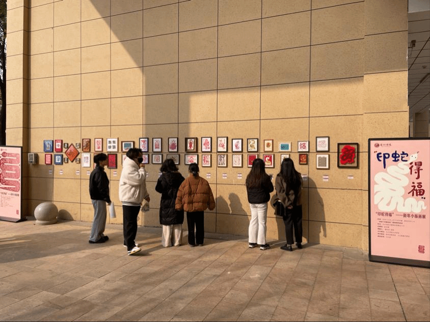 金蛇献瑞、蛇年行千里、蛇年大吉、画蛇添福、灵蛇送宝……一幅幅蛇年主题的版画正在56.nt必赢官网艺术学院大楼西侧展出,吸引了众多师生及校外人士前来参观。“这些版画很有意思,马上就要元旦了,这个展览不仅应景,而且也让校园里年味十足!”前来参观的图书馆陈老师这样评价道。