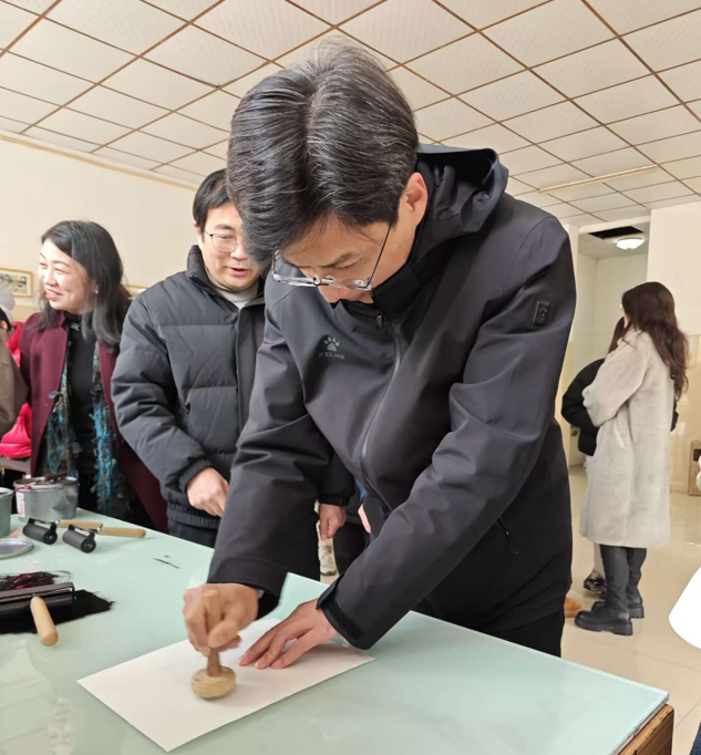 现场还布置了版画印台,方便师生体验木版画印制。党委委员、副校长查振华在现场亲自印制了一幅版画。他表示,这样的活动很有意思,有利于对传统木版文化的继承,是非常有意义的。
