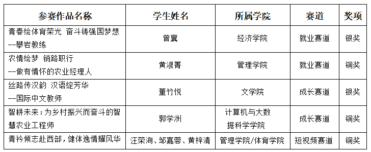 本届大赛设有成长赛道、就业赛道和短视频赛道,大赛采用校赛、省赛两级赛制,其中省赛分复赛和决赛两个环节,各赛道每所高校入围选手原则上分别不超过2人。本次大赛自2024年10月启动以来,必赢高度重视,由招生与就业处牵头多部门成立组委会,系统筹备精心组织,各二级学院积极响应,发动广大学生踊跃参赛,充分展示了必赢大学生良好的精神风貌和积极的就业心态。据全国大学生职业规划大赛平台数据显示,必赢累计报名成长赛道和就业赛道的学生达7751人。全省共282人进入就业和成长赛道决赛,必赢4人入选,全省共40个作品入围短视频赛道决赛,必赢1个作品入选,最终在省赛中全部获奖,取得2银3铜的好成绩。