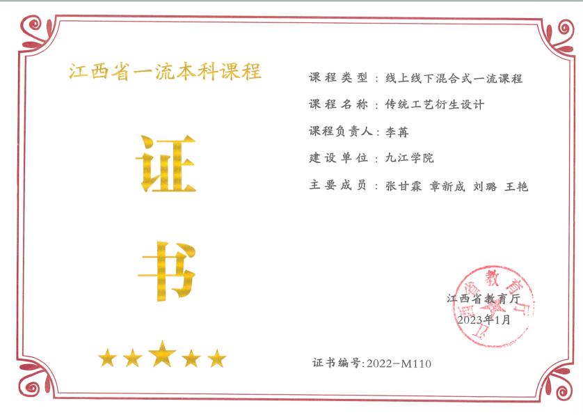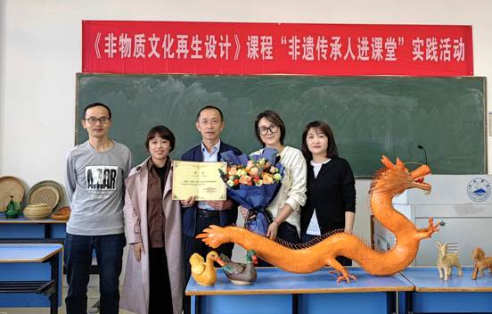 构建“非遗”科研平台,将“非遗”教育引入课堂并编写相应教材。聘请非物质文化遗产专家、传承人为兼职教授。通过展览、交流、培训、学生社团等多种活动,丰富“非遗”教育内涵,提高“非遗”教育水平。学院连续几年组织承办了中国非物质文化遗产传承人群研培班,组织学生与修水全丰花灯传承人一起赴北京舞蹈学院参加“一带一路”民族传统舞蹈展演,成功将九江民间优秀传统文化进行了推广;艺术设计创新与非遗传承教育“双轨融合”教学团队被确定为江西省高水平本科教学立项建设团队。