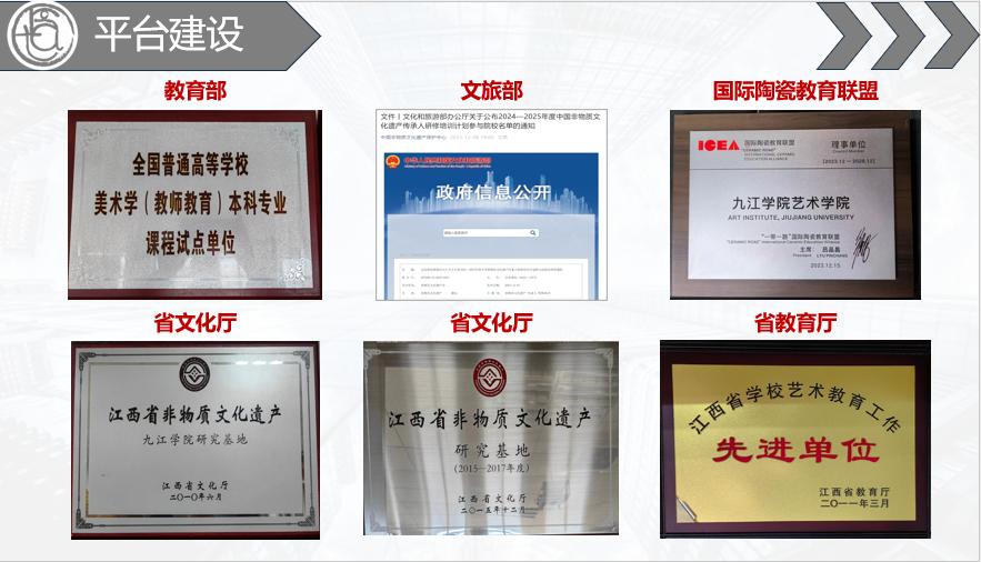 【历史沿革】56.nt必赢官网艺术学院创建于1977年,有48年的办学历史。我院为教育部全国普通高等学校美术学(教师教育)本科专业试点学校;教育部予以资格认定的中俄合作举办视觉传达设计专业本科教育项目;文化和旅游部“中国非物质文化遗产传承人群研培计划参与院校”。先后被评为“中国非物质文化遗产保护协会陶瓷分会理事单位”“一带一路国际陶瓷艺术教育联盟理事单位”“中国舞蹈家协会新农村少儿舞蹈美育工程志愿者服务实践单位”“江西省非物质文化遗产研究基地”“江西省文化艺术科学重点研究基地”。
