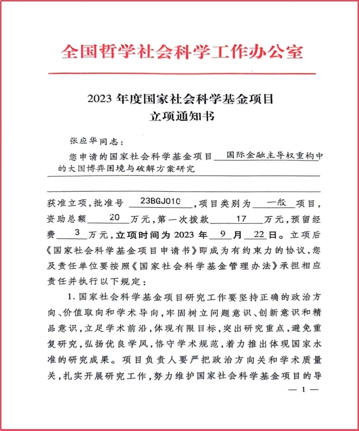 张应华博士2023年获得第二个国家社科基金项目