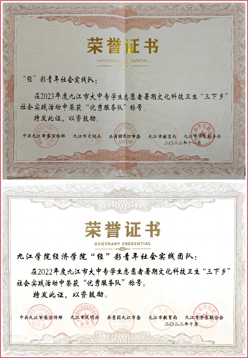 经济学院三下乡实践服务队多次获得市级表彰