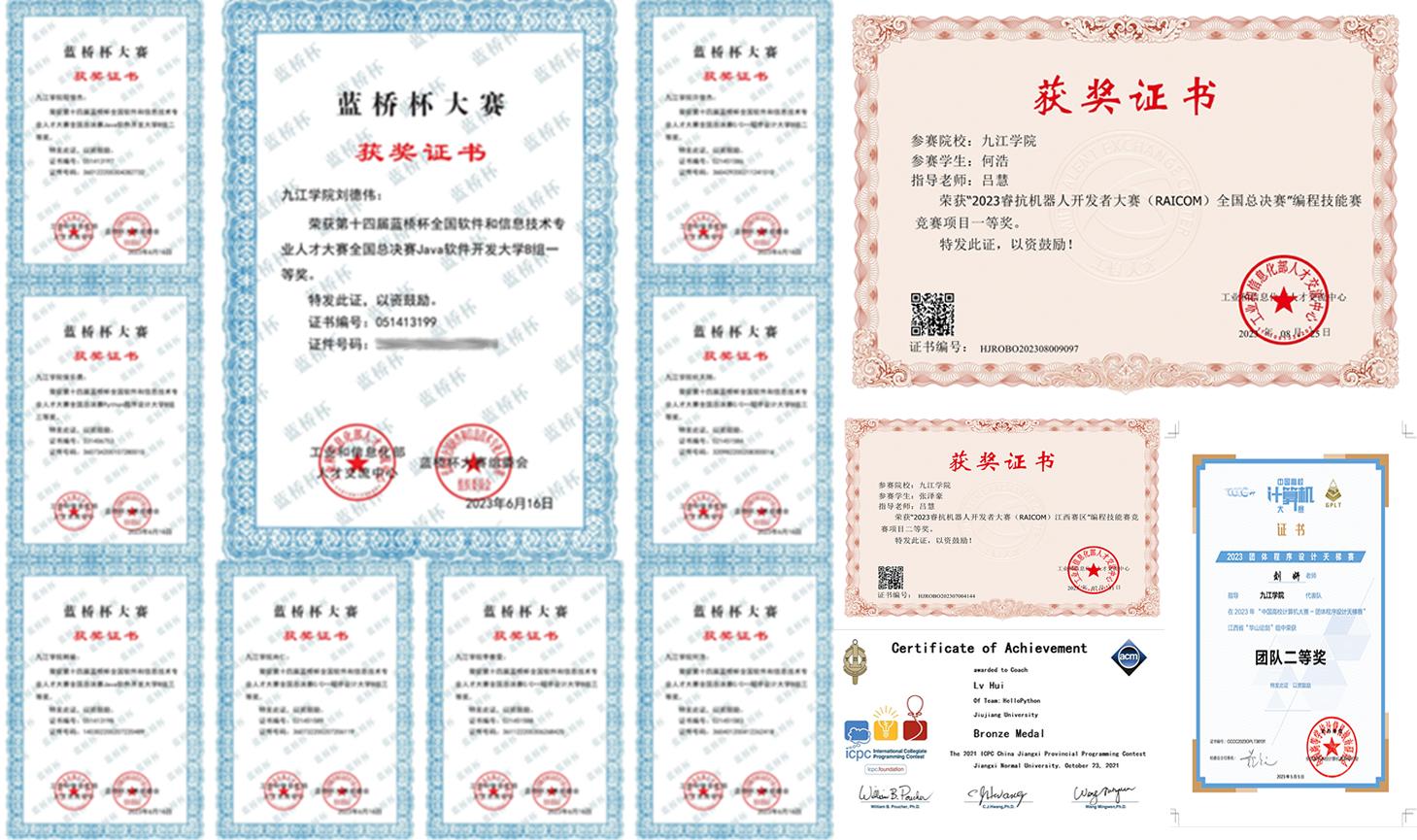 深入推进“三全育人”综合改革,坚持“五育并举”,推动在学生中实现“五个一”,搭建育人新生态,践行立德树人根本任务,筑牢政治定力。整合专业教师、学工队伍、专职辅导员、企业工程师兼职班主任“四方”立体化育人力量,搭建以赛促学、以赛促教、以赛促创育人闭环。拓展素质教育阵地,鼓励大学生投身乡村振兴实习实践,积极开展“三下乡”和红色走读活动,提高学生综合素质和社会责任感。学院建成计算机历史陈列馆,征集陈列国产和进口的老式台式计算机、笔记本、打印机约50台(套/件),精彩展示计算机近30年的发展迭代史。陈列馆作为计算机发展历史的见证与记忆,很好地激发了学生专业学习热情,增强了学生的科技报国情怀,成为学院计算机课程思政教育的特色品牌。学院先后获得江西省全省高校红色走读活动实地走读三等奖、全省大学青春之问征集活动获一、二、三等奖各1人,1人荣获2021年度中国大学生自强之星。教师指导学生参加“蓝桥杯”“天梯赛”“机器人开发者大赛”等各类学科竞赛,近三年,获得省级及以上奖励500多项,其中国家级奖励50多项。教师指导学生发表高水平学术论文14篇,其中SCI论文4篇,EI论文10篇;组织学生参加“数字技术”鄱湖论坛、演化计算与学习研讨会等学术会议,在拓宽学生学术视野、激发学生学术兴趣上取得了良好效果。