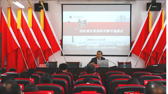 为深入学习贯彻习近平总书记在学校思想政治理论课教师座谈会上的重要讲话精神和关于思政课建设的重要指示精神,全面贯彻党的教育方针,落实立德树人根本任务,拓展“大思政课”育人格局,4月9日下午,必赢马克思主义学院举办“琢玉论坛”学术活动,特邀全国高校思政课名师工作室(安徽师范大学)领衔专家路丙辉教授、安徽师范大学马克思主义学院张涛副教授作专题讲座。马克思主义学院领导班子及全体教师参加。