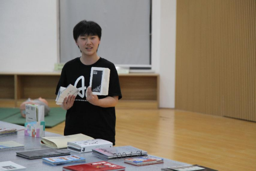 “这本书的内容借鉴《再见,压力》一书。在设计上,我采用口袋书的形式,分为7小本,用小方盒做书盒,将其寓意为垃圾桶。每看完一本放回书盒,就好像把坏情绪统统装进垃圾桶扔掉,和坏情绪说再见。”手工书《情绪垃圾桶》的设计者陈亦婧同学介绍。