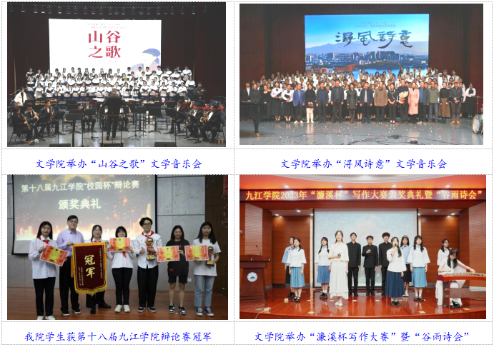 1.特色平台筑就师生发展新高度。学院搭建了多个特色平台,为师生提供广阔的发展空间。以庐山文化研究中心为代表的科研平台,吸引了众多师生参与地域文化研究,推动了科研成果的产出。2024年,文学院获得国家社科基金项目1项,整理古籍5册,获得江西省社会科学学术年会优秀论文二等奖1项,成功入选“江西宗教工作智库专家”1人。同时,学院积极打造校园文化平台,“谷雨诗会”“文学音乐会”等活动成为校园文化品牌,丰富了学生课余生活,提升了校园文化氛围。