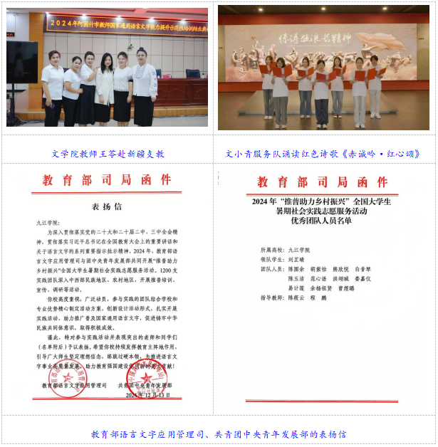 3.深耕普通话推广,国赛舞台展锋芒。文学院积极投身于国家通用语言文字推广工作,收获了一系列突破性成绩。2024年,在教育部、国家语委共同主办的第六届中华经典诵写讲大赛全国总决赛中,我院师生在国赛中斩获佳绩,荣获一等奖1项、二等奖2项、优秀奖1项、优秀指导奖1项。