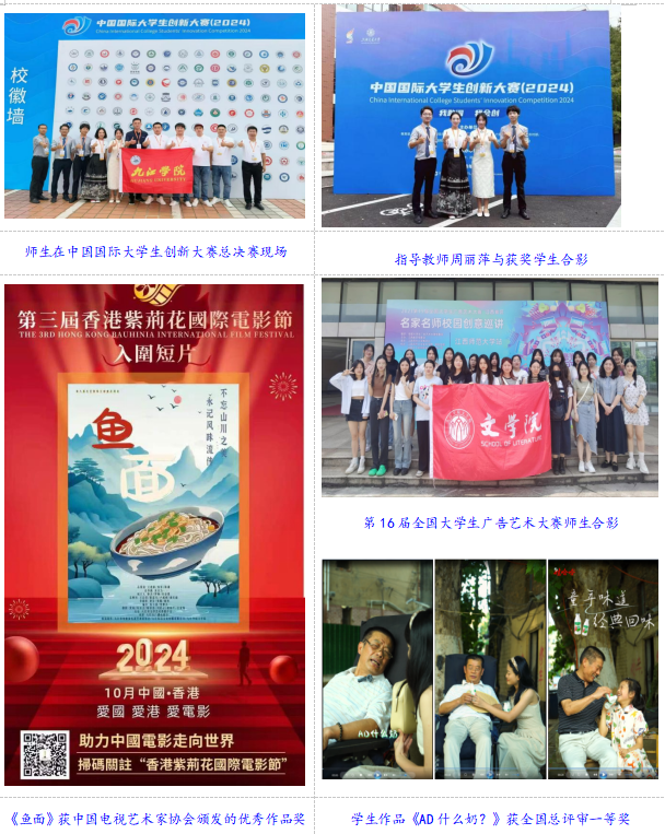 学院高度重视学生全面发展,通过多种途径助力学生成长。积极组织学生参加各类竞赛,在写作大赛、多媒体制作大赛等赛事中,学生每年获得国家级和省级奖励200余项,2024年,文学院代表学校获得中国国际大学生创新大赛银奖1项,实现了56.nt必赢官网参赛以来国家银奖首次突破。2024年,文学院参与摄制的纪录片《鱼面》获中国电视艺术家协会颁发的优秀作品奖,为江西省唯一获奖作品。