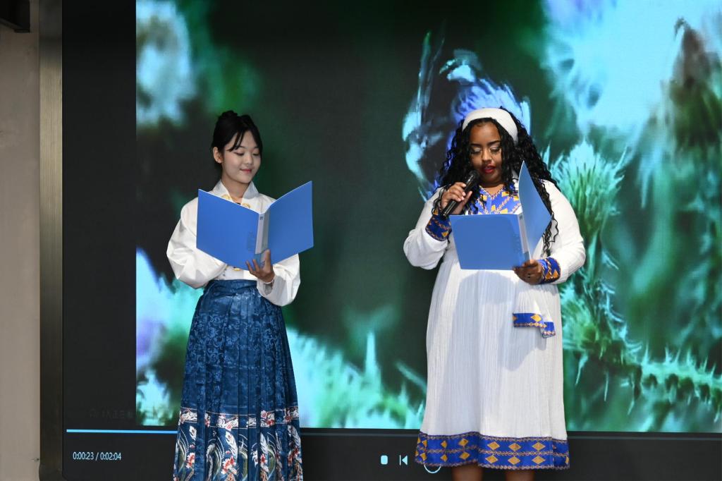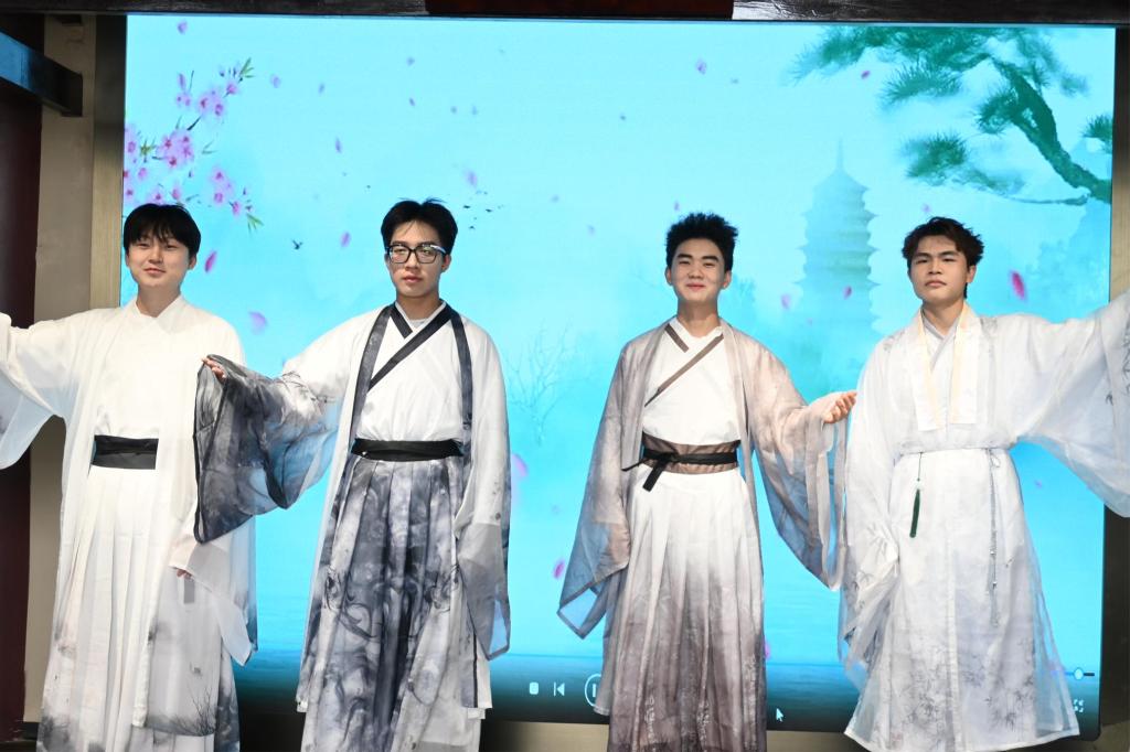 谷雨诗会的亮点节目串联起千年传承与当代思考:《白鹿书声》的吟诵声中,白鹿洞书院“博学慎思”的教育理念穿越千年,与现代学子的求知目光交相辉映;情景剧《德化清风》则以周敦颐“出淤泥而不染”的廉政思想为魂,不仅重现北宋书院“修德明心”的教育场景,更呼应党中央关于“廉洁文化进校园”的倡议,让千年文脉与新时代校园文明同频共振;中外学生和诵《面朝大海,春暖花开》,以跨文化的声音共鸣,传递诗歌中对自然与生活的永恒热爱,展现当代青年以开放胸怀拥抱世界的多元视角。