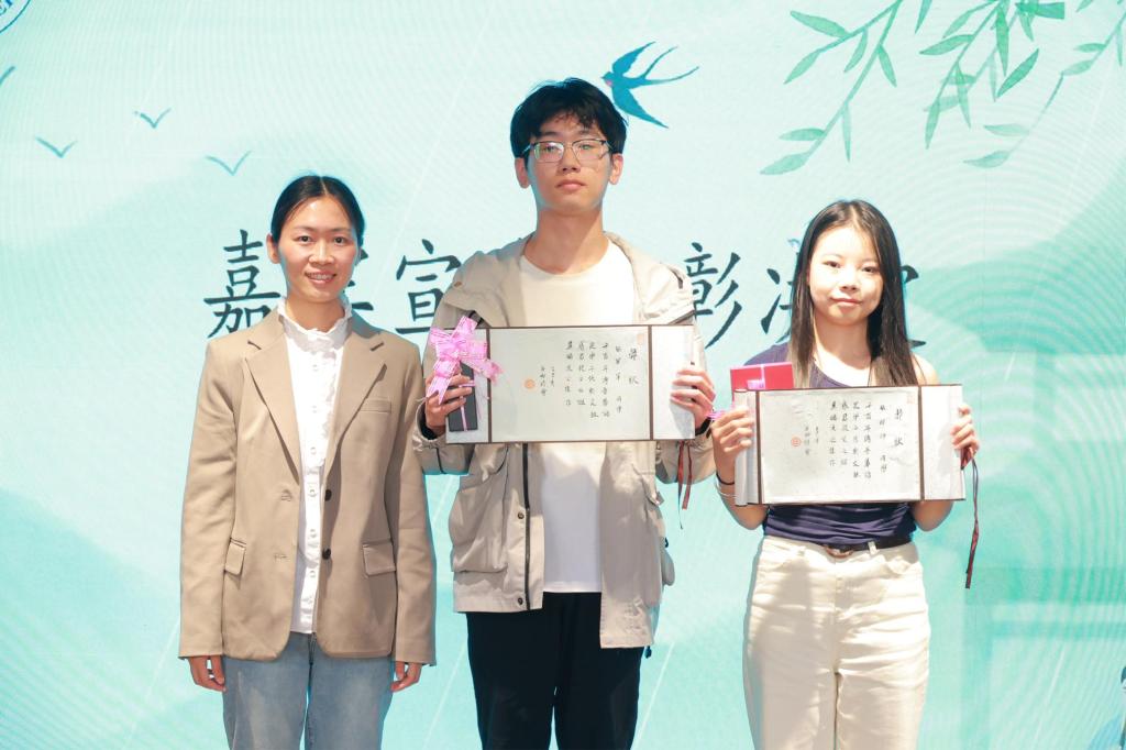 特等奖获奖者A2421班叶萍作为学生代表发言,她分享了创作诗歌《折痕里的春天》的过程,谈及从红色爱国电影中汲取灵感,从中感悟到诗歌并非刻意雕琢的修辞,而是生命经验与语言碰撞时的诚实震颤。她表示,这份荣誉既是鼓励也是鞭策,未来将以诗为舟追寻生活中的真与美,主动传承中华优秀传统文化、弘扬九江地域文化,并期待与热爱文学的同行者一道,让文字化作星辰,照亮共同的理想远方。