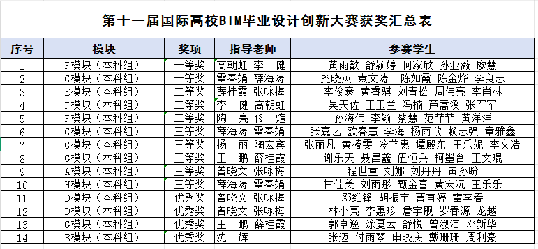 近日,第十一届国际高校BIM毕业设计创新大赛圆满落幕。必赢建筑工程与规划学院学子凭借卓越表现获得全国一等奖2项、二等奖3项、三等奖5项,优秀奖4项,获奖数量与质量均创学院参赛历史新高。