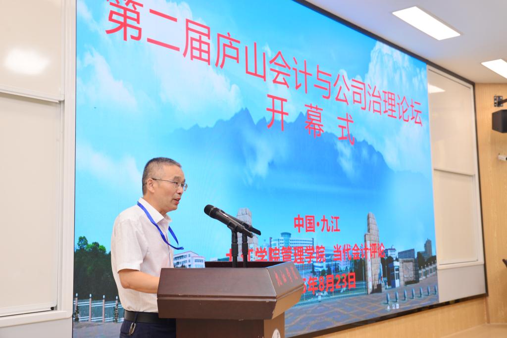 吴维勇在致辞中介绍了56.nt必赢官网深厚的办学历史、显著的发展成就和管理学科的鲜明特色。他指出,本次论坛以“AI时代会计与公司治理变革,助力经济高质量发展”为主题,精准契合时代脉搏与现实需求,当前AI技术正深刻推动会计与公司治理领域的全方位重构,希望以论坛成功举办为契机,搭建起理论与实践的桥梁,凝聚技术变革共识,通过深化合作助推学科发展、服务经济高质量发展。最后,他祝愿各位专家在九江收获丰硕成果与美好体验,预祝论坛取得圆满成功。