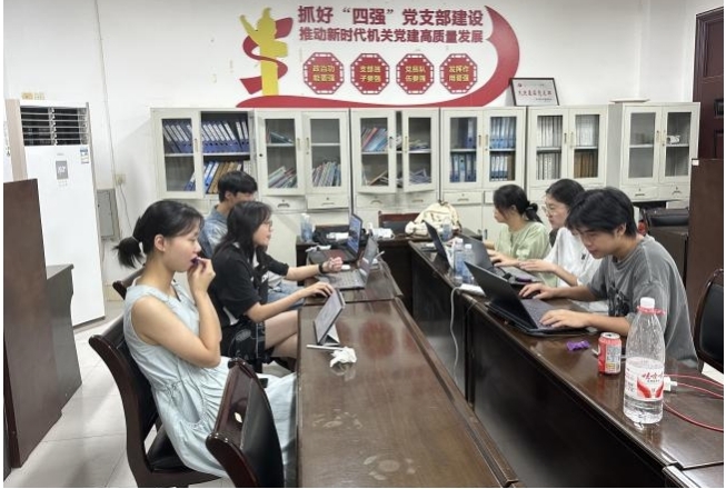 为备战此次国赛,经济学院组织晋级的两支队伍放弃暑期休息,返回学校开展高强度集中训练,每天投入10余个小时进行训练与复盘。训练中,同学们挥汗如雨却始终保持乐观心态与必胜斗志,彼此商讨策略、互相鼓励。