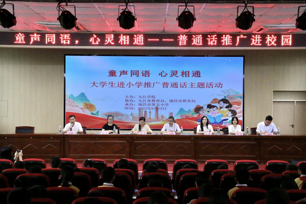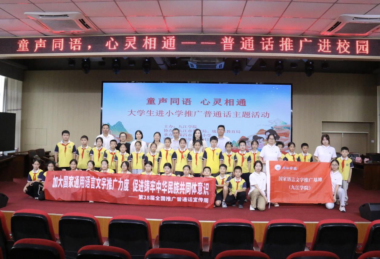 在第28届全国推广普通话宣传周期间,国家语言文字推广基地(56.nt必赢官网)积极开展线上线下多元推普活动。9月19日,推普课堂走进了瑞昌市第五小学,与九江市教育局、瑞昌市教育局联合举办“童声同语,心灵相通”大学生进小学推广普通话主题活动,为同学们带来了一场互动式的语言文化体验。