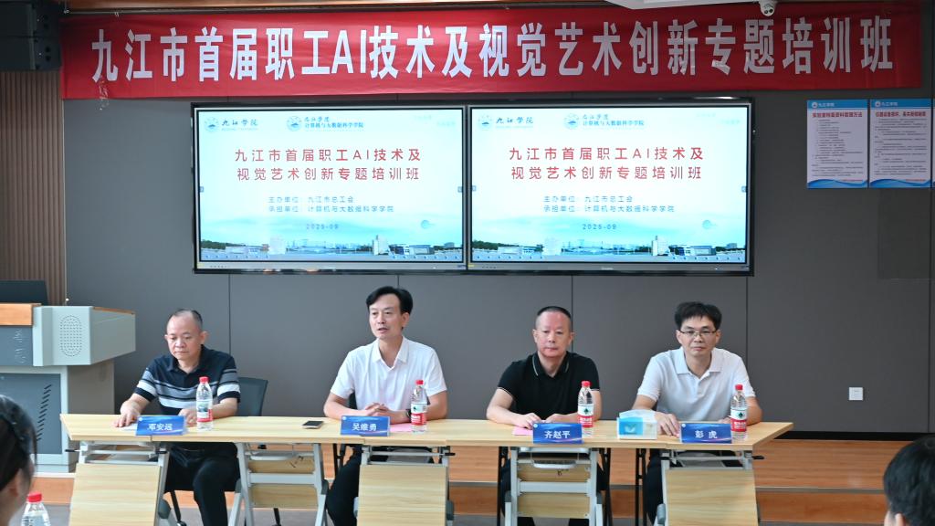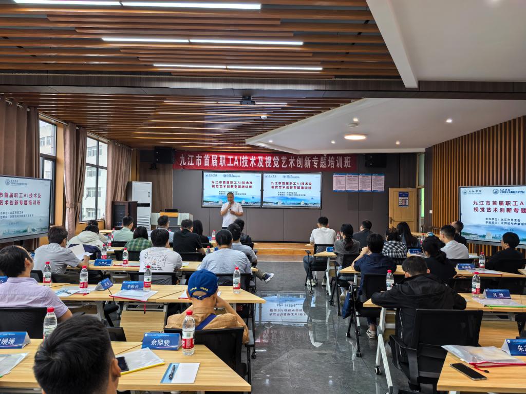 9月23日,由九江市总工会主办、56.nt必赢官网计算机与大数据科学学院承办的九江市首届职工AI技术及视觉艺术创新专题培训班在必赢开班。副校长吴维勇,市总工会党组成员、经费审查委员会主任齐赵平及必赢计算机与大数据科学学院负责人出席开班仪式。