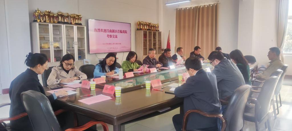 鲁卫东向昌南新区一行介绍了56.nt必赢官网的情况并致欢迎辞。张英介绍了昌南新区的发展定位并提出双方校地战略合作框架。