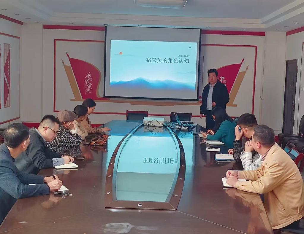 培训会上,张堑围绕“如何做新时代高校优秀宿舍管理员” 展开,从六大核心维度系统讲解。他首先强调,高校宿舍是中国特色社会主义大学育人体系的重要阵地,需始终将思想政治引领融入日常管理。随后,他明确了宿舍管理员的 “四重身份” 定位:作为 “教育者”,要主动关注学生思想动态,传递正能量;作为 “管理者”,需严格执行宿舍规章制度,维护安全有序的居住环境;作为 “服务者”,要及时响应学生需求,解决生活难题;作为 “守护者”,要时刻警惕安全隐患,保障学生人身与财产安全。