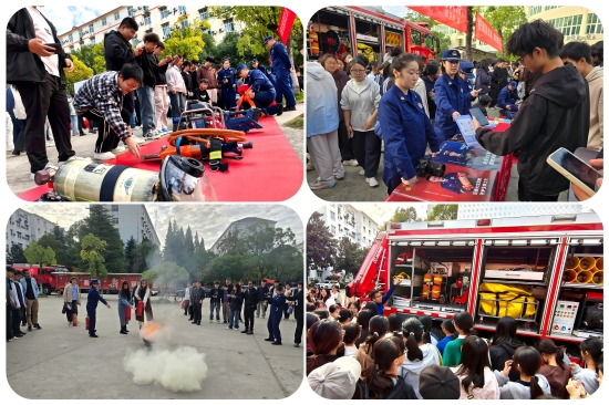 活动现场,濂溪区消防救援大队的指战员们向师生们详细讲解了各类消防器材的使用方法,并现场进行了“油盆灭火”操作演示。师生们积极参与其中,依次进行实战演练,从而掌握了扑救初期火灾的技能。随后,在消防指战员的带领下,师生们有序地参观了消防车辆和器材。通过详细的讲解和生动的演示,师生们深入了解了灭火器、消防水带、自救呼吸器、消防服等设备的使用细节,对消防设备有了更为直观的认识,进一步增强了消防安全意识。