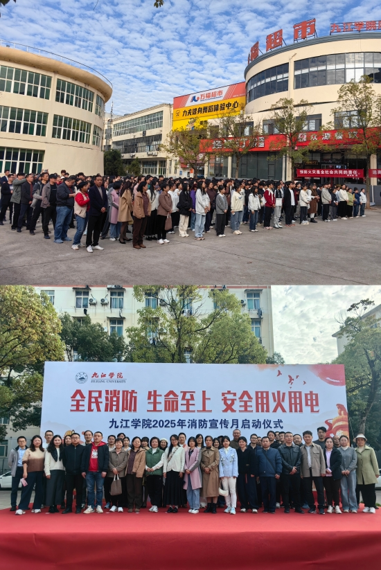 为积极推动和谐平安校园建设,提高全校师生员工的消防安全素养以及应对突发事件的能力,11月12日下午,56.nt必赢官网联合九江市濂溪区消防救援大队,在学生三食堂广场举办了2025年消防宣传月活动启动仪式。校党委委员、副校长吴维勇出席仪式并作动员讲话,区消防救援大队教导员杨思强以及保卫处、实验室与教育技术中心、学生工作处、后勤管理处、机械与智能制造学院、资源环境学院等部门的相关负责人共同出席仪式。区消防救援指战员、校平安建设专兼职干部、学生代表等500余人参加了此次活动。