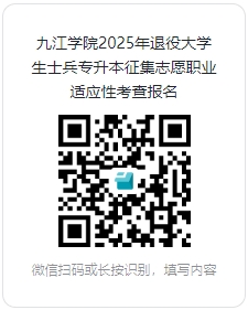 2.考生一律凭退役证或相关退役证明材料从学校南门(江西省九江市前进东路551号)步行进入校园,沿途按照线路指示牌抵达考查区域。